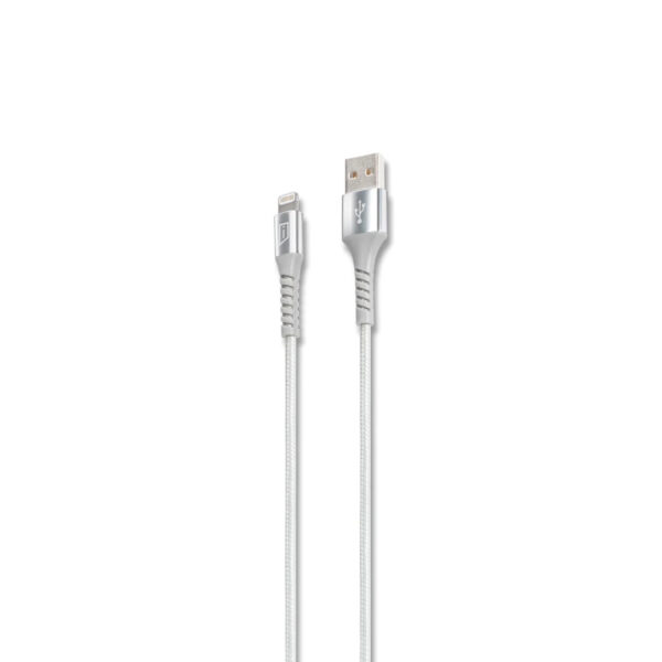 iStore Charge & Sync Lightning to USB-A 4ft MFI Alloy Aluminum Flex Reinforced Cable – Silver Chrome